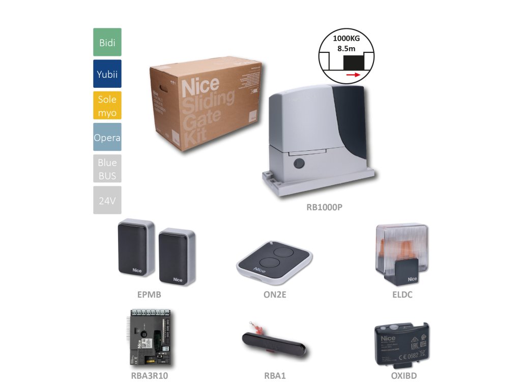 ROBUSKIT1000P sada pro posuvnou bránu do 1000kg, 1x RB1000, 1x RBA3R10, 1x ON2E, 1x OXIBD, 1 pár EPMB, 1x ELDC, 1x RBA1, indukční koncové spínače