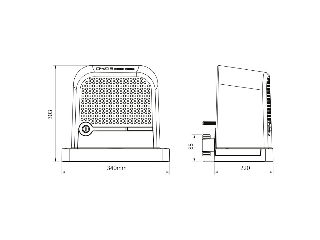 Sada pro posuvnou bránu do 600kg, 1x ROBO600R10 (230V, 300W, 600N), s zabudovanou řídící jednotkou, se zabudovaným přijímačem, 2x ON2E